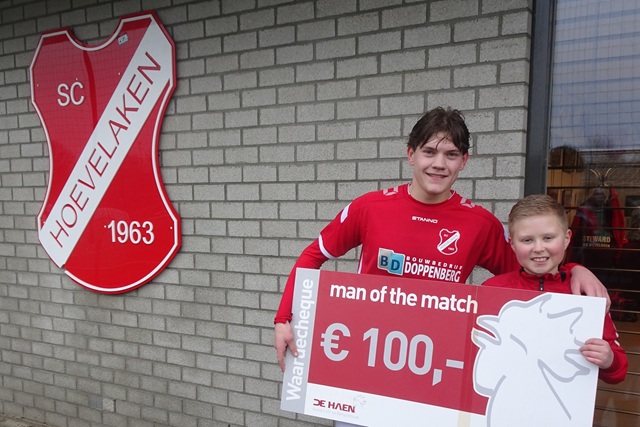 Duco van den Heuvel speelde een goede wedstrijd en werd uitgeroepen tot meest waardevolle speler bij Hoevelaken. Rechts Floris Biewenga, de Pupil van de Week.